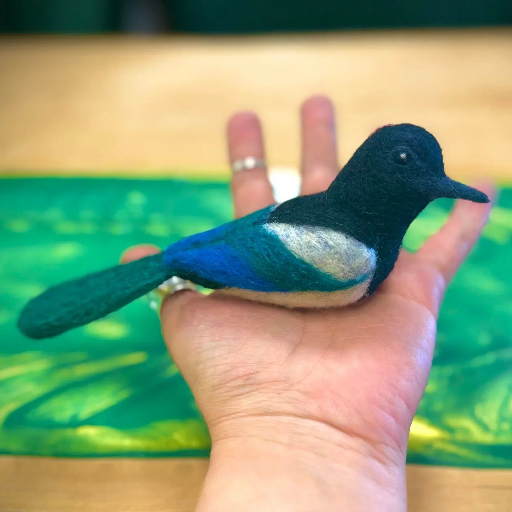 Learn how to needle felt a Magpie! Ambassador Shavila will join the first 30 minutes of class to inspire all the felters! Half of the proceeds from this class will be donated to Bird TLC. This is an easy class for beginners, no experience is necessary. (Ages 12 & up)
