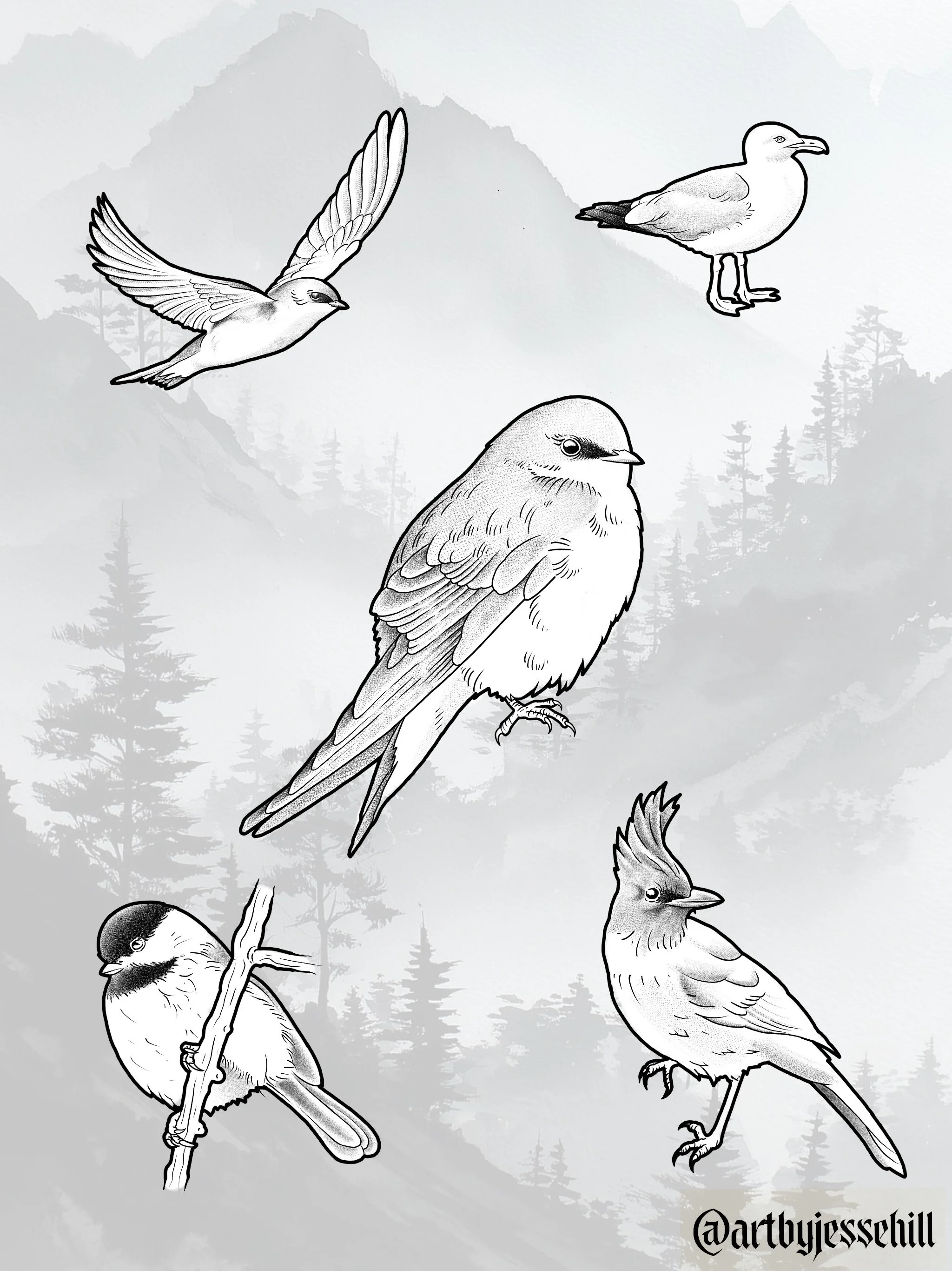 Swallow, Gull, Chickadee, and Steller’s Jay